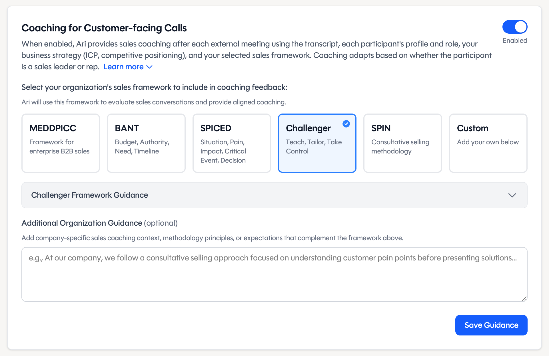 Objection handling, talk-to-listen ratio, deal momentum — Ari turns every sales call into a coaching session.