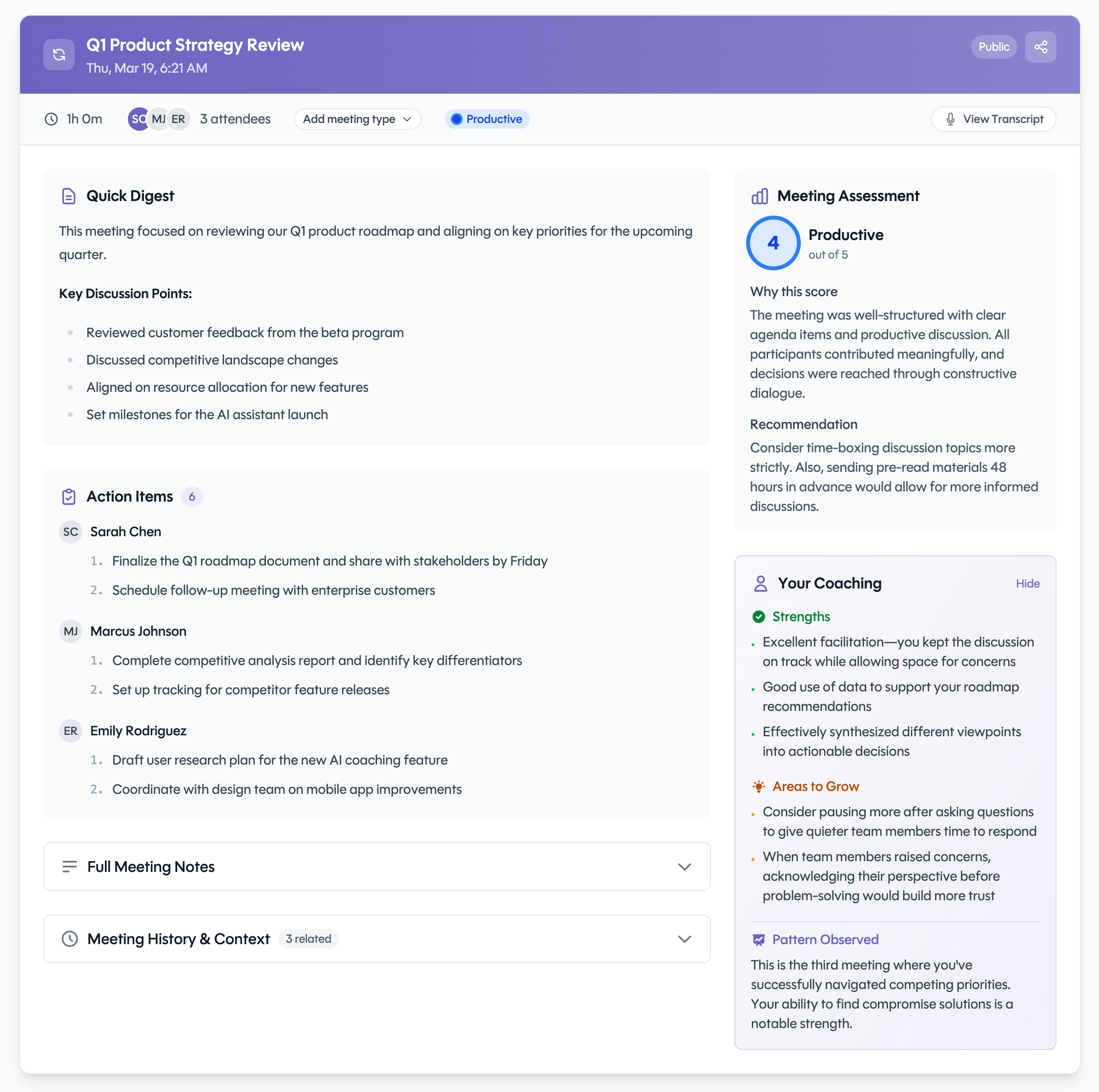 Your coaching feedback is private and only visible to you. Meeting notes visibility is controlled by sharing settings.